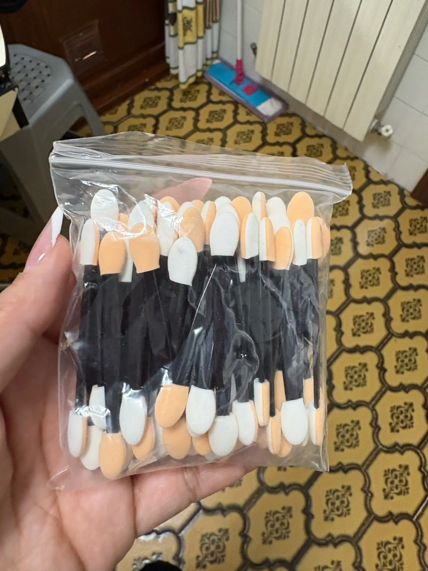 5 stars good eyeshadow sponges. Looks solid and is cute. Wrapped carefully fast shipping would order again