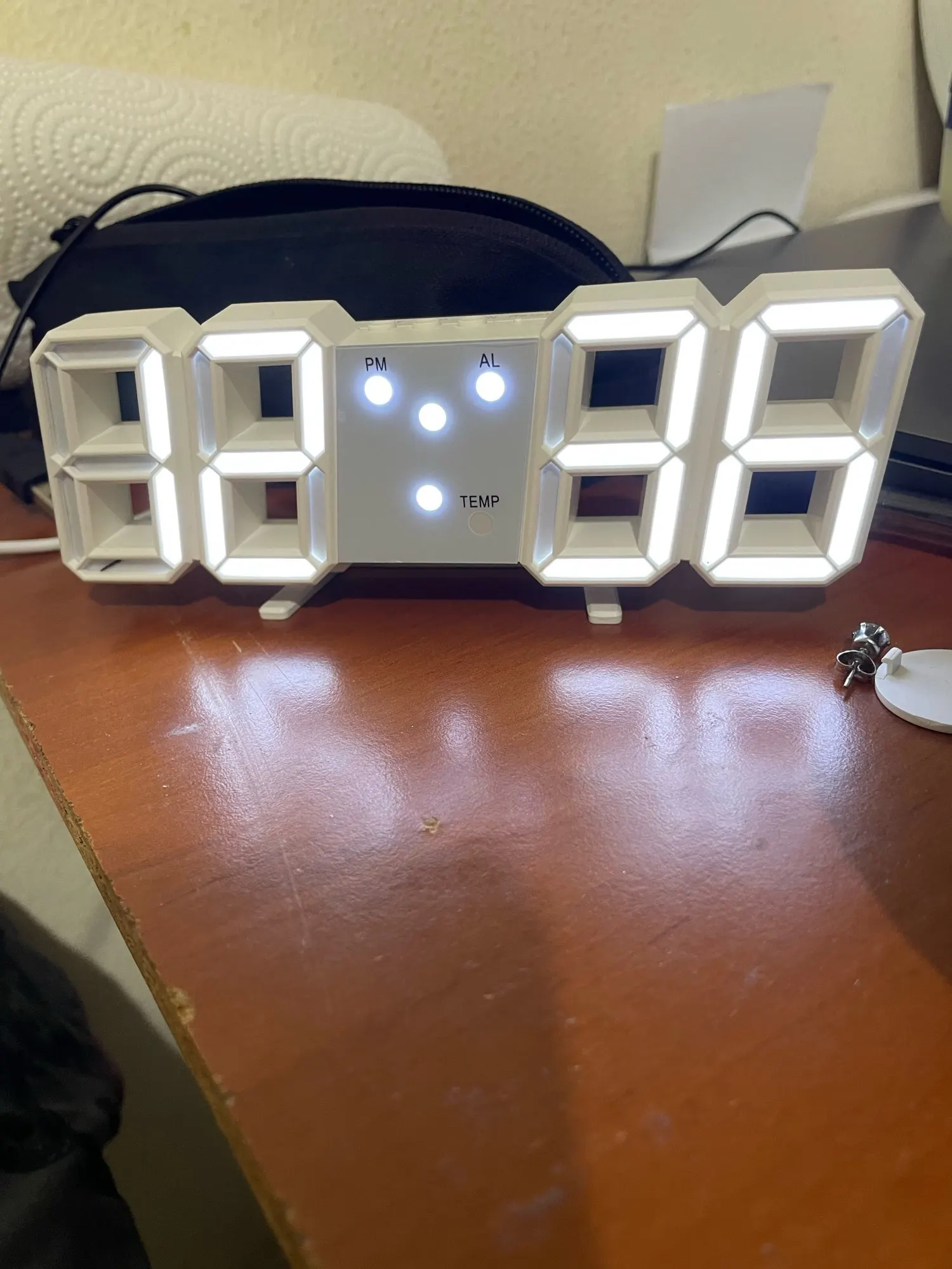 The clock is very good, a little short cable but it is in order, you can see it day and night very clearly shows everything that is very cheap good and small I can give it to the desk. Regards.