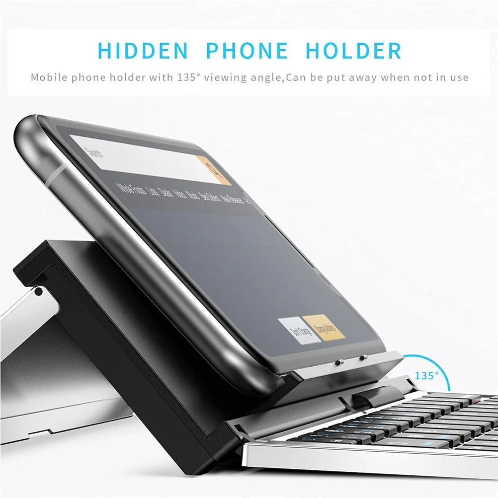 Portable Foldable KeyboardElegant Aluminum Alloy with contemporary styling. Its excellent touch and clean appearance make it perfect for your phone and tablet. It would be much convenient to use iPad, or other tablet and phone to answer emails, write quick social media updates, and jot down ideas for blog posts. The only drawback is the effectiveness from touch typing. But don’t worry, the Geyes Foldable keyboard is designed to solve to the problem, and boosts your productivity without sacrificing the mobility.