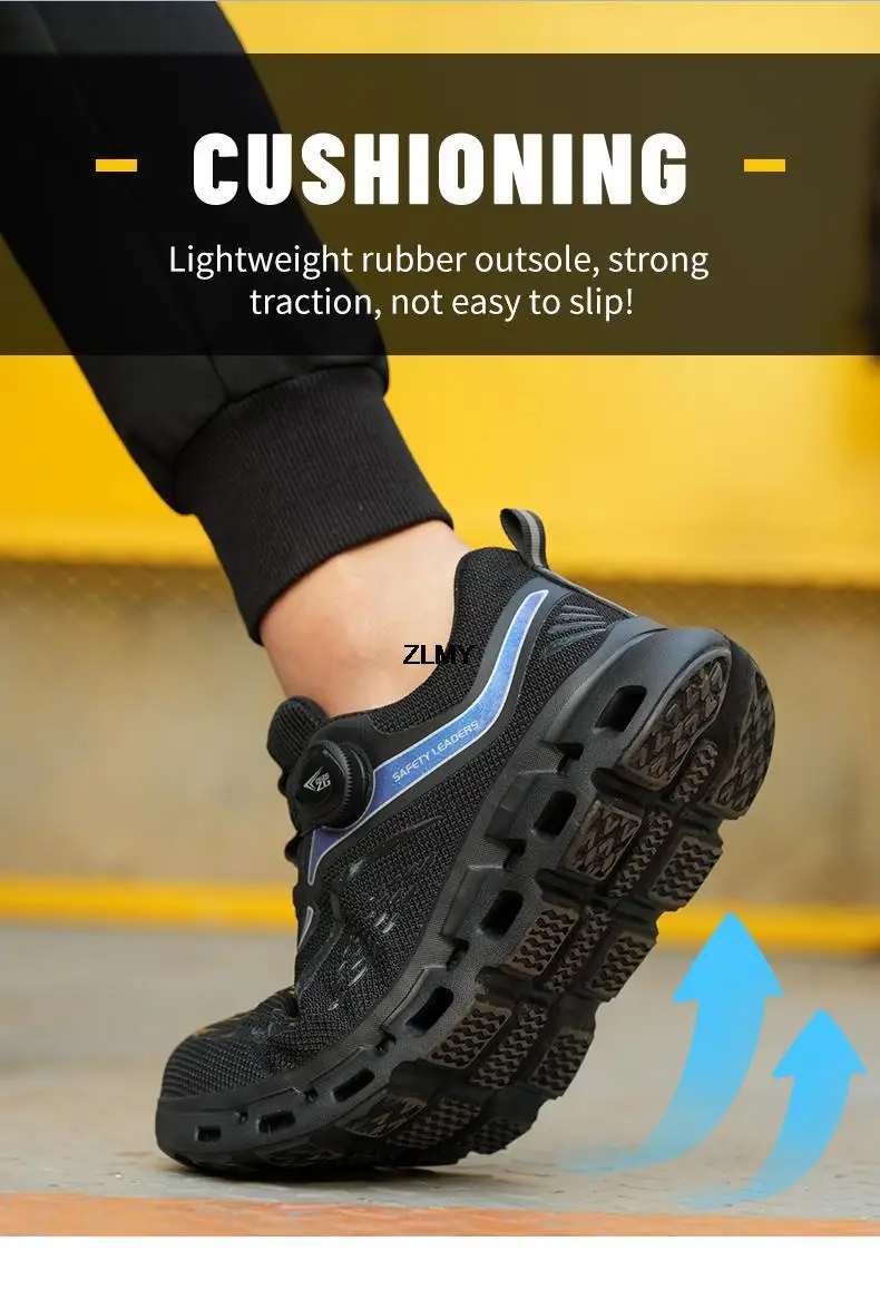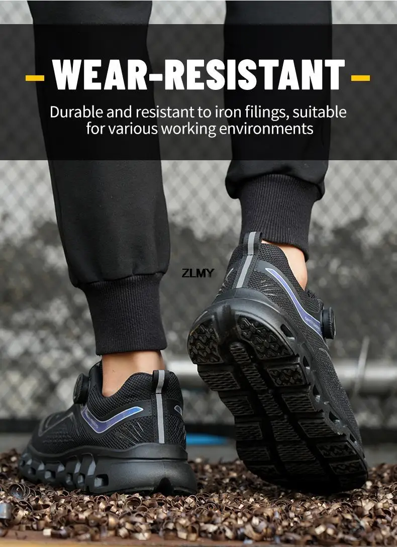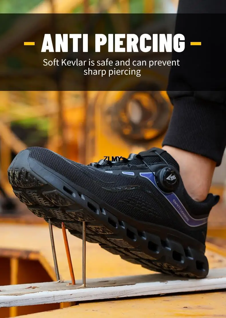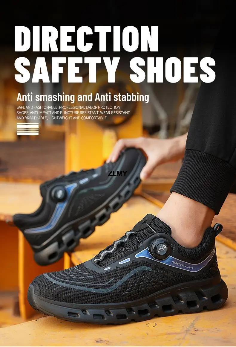 ZLMY Light Safety Shoes Men Steel Toe Sneaker Rotatory Button Puncture Proof Work Shoes Man Fashion Work Safety Boots Anti-stab