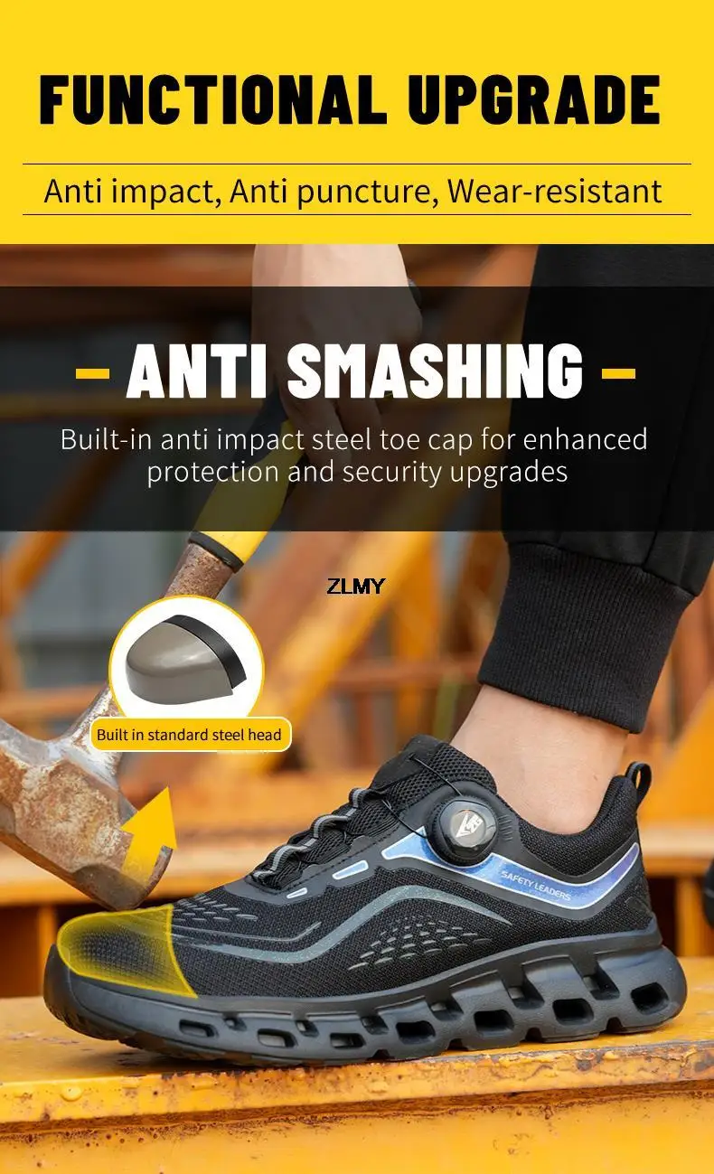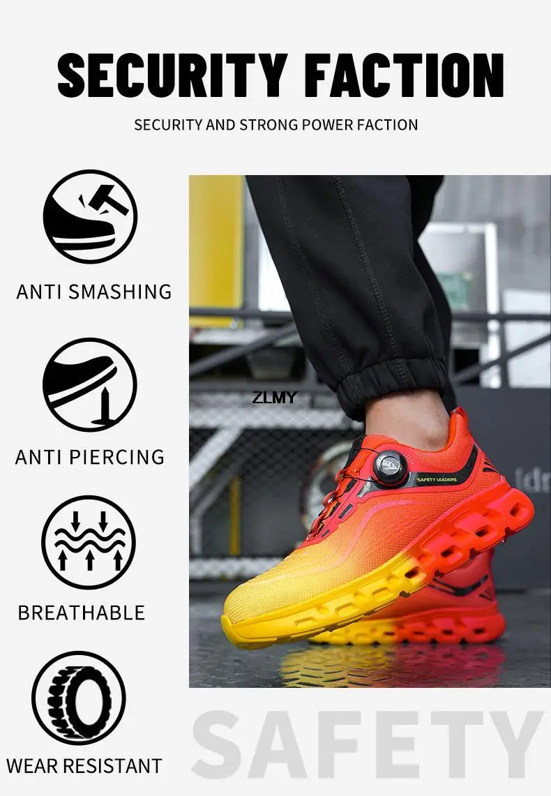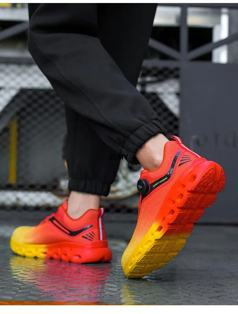 ZLMY Light Safety Shoes Men Steel Toe Sneaker Rotatory Button Puncture Proof Work Shoes Man Fashion Work Safety Boots Anti-stab