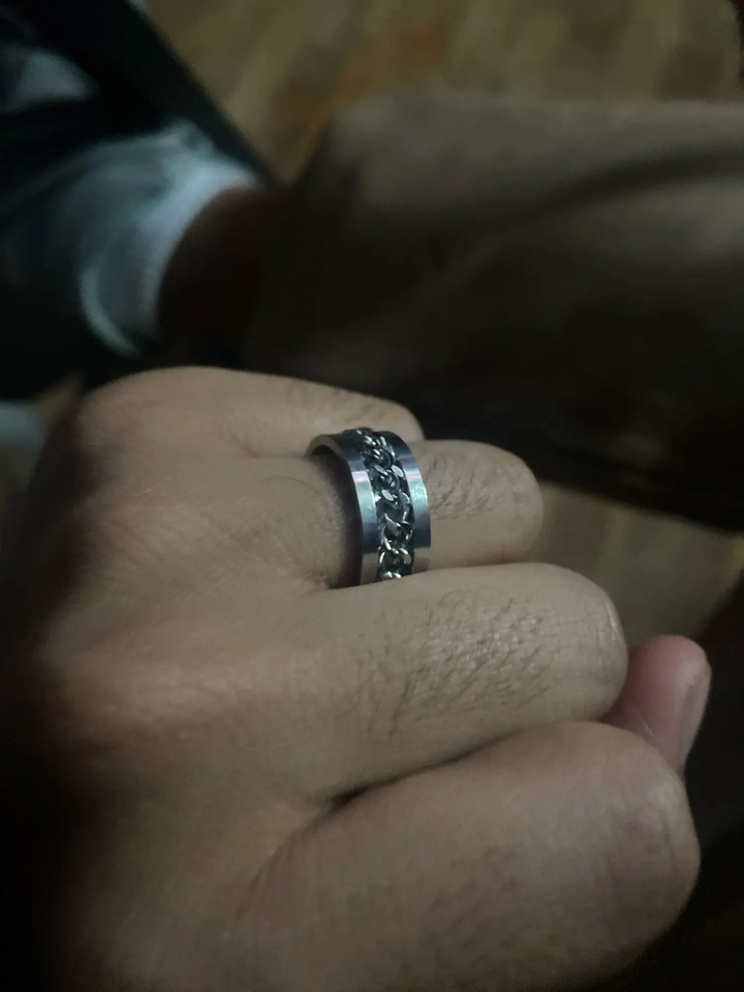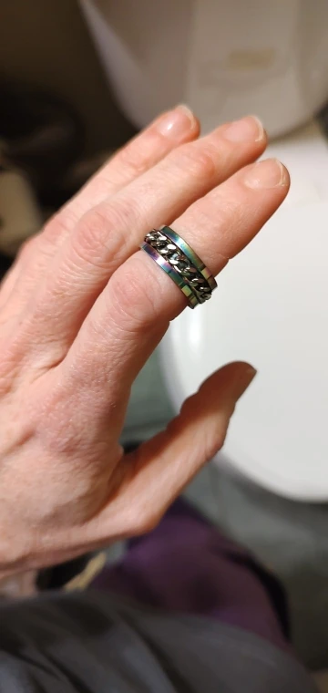 The ring feels pretty smooth overall, but spinning the chain has a weird feel to it. At first I didn’t like the texture or sound, but it definitely grew on me. As for the cravings on it, they aren’t that visible, but are still pretty.