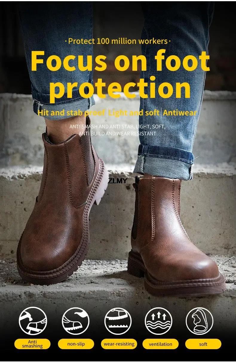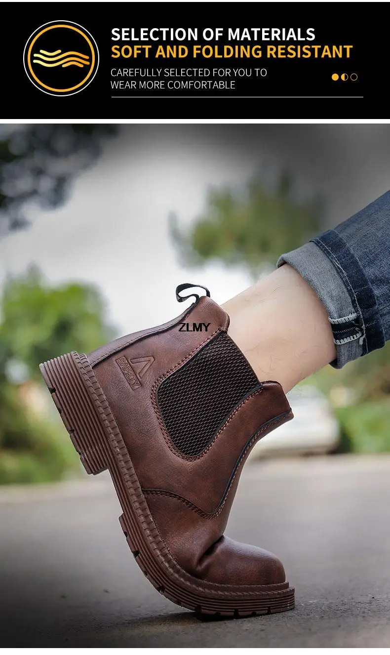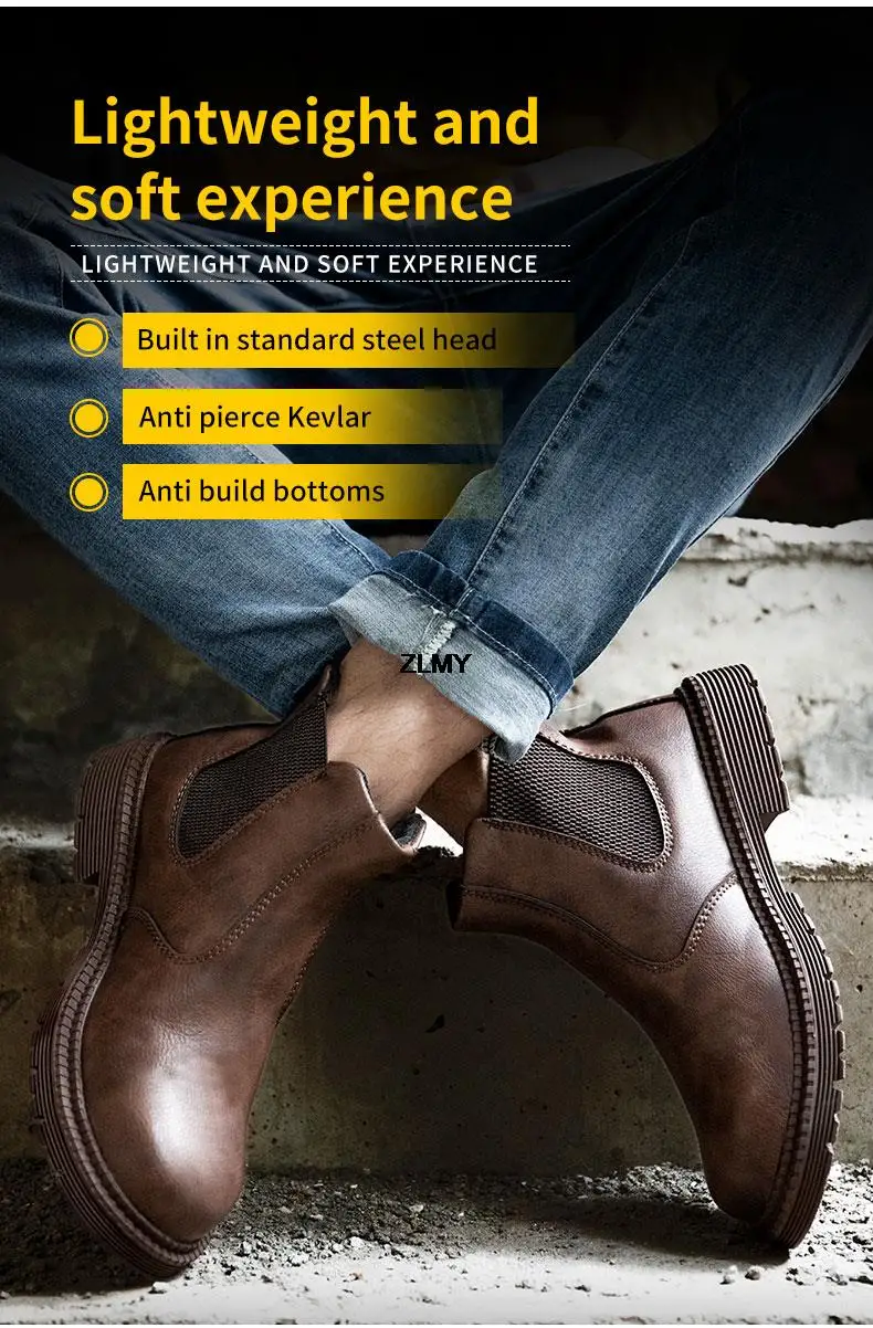 Waterproof Safety Shoes For Man Puncture Proof Work Safety Boots Men Chelsea Boots Steel Toe Work Shoes Industrial Security Male